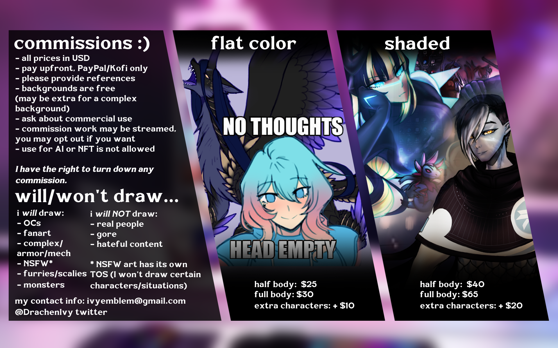 update: i have a website to handle commissions!!! please consider ordering through there, it helps me get verified!!!!